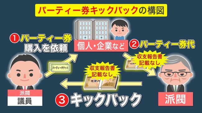 政治家のパーティ権の始まりは、税務省の鈴木友康がパーティ券の仕組みを「知り合いのヤクザ」のシノギである「ノミ屋(博打)の方法」を真似たものだし、誰か一人でもパーティ券を始めると全員の政治家がやらないわけにはいかない方法なので2024年の国会前に「パーティ券問題」がマスコミに出たわけです。