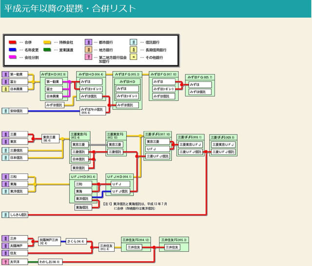 日本のどんぶり勘定の「金貸業の銀行」が多すぎるので「経営内容が悪い都銀の統廃合」を私の一存で断行することを条件にしたので、「平成の銀行の大合併」は全て私が決めた結果です。