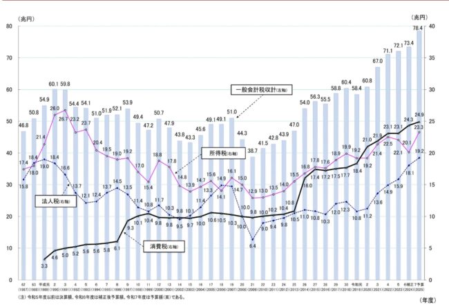 1989年(平成元年)一般会計税収の推移税収 54.9億円