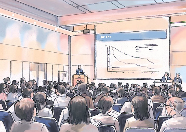 「製薬会社のプロパー」は、今までの抗がん剤の効果を発表したあと、「アメリカの新薬の発表」を詳しく説明する資料を全員に配ってグラフや写真で説明しますが、「ベテラン医師」が質問することは、