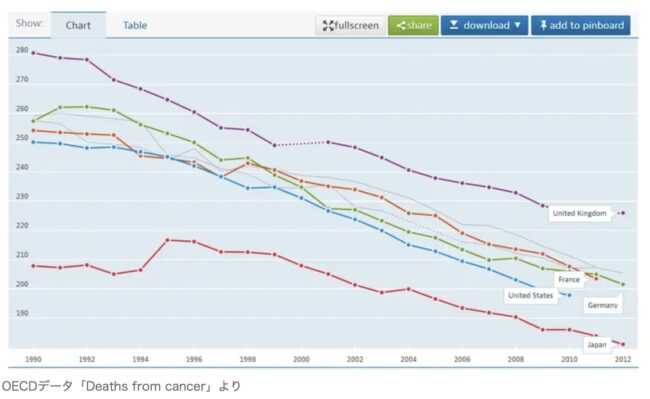 「日本はガンで死ぬ人が増えている」と「厚生労働省」が数字を出して脅していますが、毎年、どんどん改善されている実態をまず把握して下さい。
