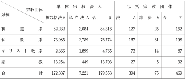今、日本で認められている「宗教の数と人数」をよく見て考えて下さい。