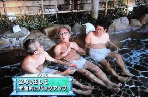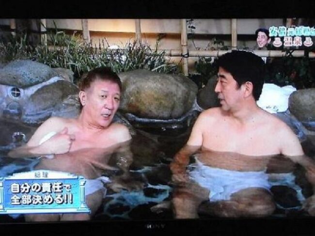 「男風呂」なので、SPを兼ねて私が撮影したので、こんな画像が世に出ることはありませんが、「2度目の首相」にするための作戦だったので大成功でした。