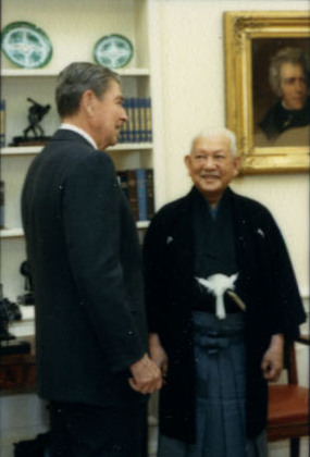 アメリカ大統領・ロナルド・レーガンと1988年にホワイトハウスに会いに行く時にも、私が一緒に飛行機で行ってあげて和服を着せてあげてから、「南朝の日本刀」も1本差し上げたので大喜びしたほど濃い関係です。