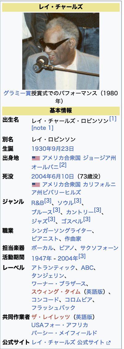 そんな状況になったので、白人のほとんどが帰り支度を始めた時に、「レイ・チャールズ」が遅れて会場へやってきたのです。