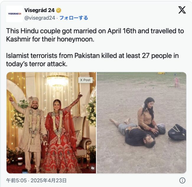 4月22日、イスラム過激派が、インドが実効支配する係争地ジャム・カシミール州の丘陵地帯の町パハルガムで、ヒンドゥー教巡礼者や観光客に向けて発砲、26人が死亡した。その後、パキスタン関連とされる武装勢力ラシュカレ・トイバの分派組織である「抵抗戦線」が犯行声明を発出した。