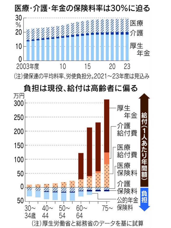 単純に言えば、平均的な日本人は税金のほかに毎年約70万円を社会保険のために拠出していることになるのです。