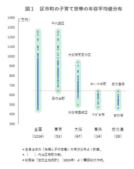 区市町別に見ると全国の子育て世帯の収入格差は3倍近くにもなる