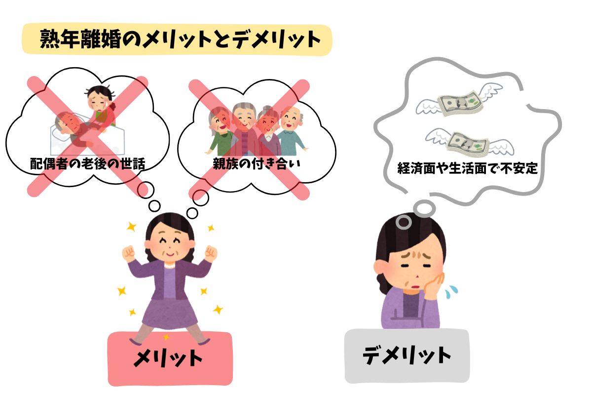 熟年離婚をすると、メリットともあればデメリットもあります。
