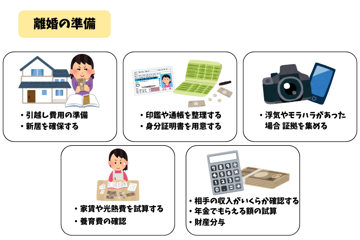 住居の確保や生活費の確認は、熟年離婚に限らず、離婚をするときには必須の準備です。