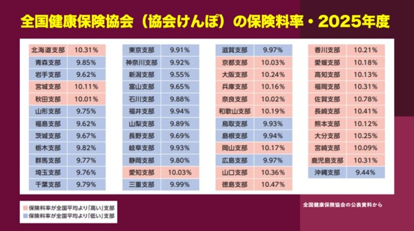 健康保険料率は都道府県ごとに異なっています。