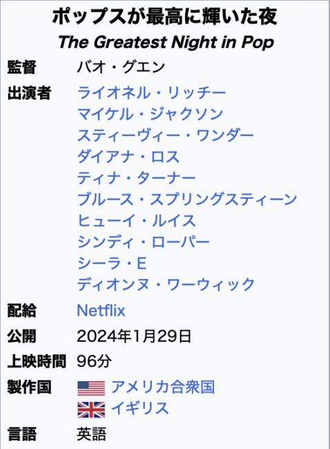 昨日、偶然、NETFRIXで「ポップスが最高に輝いた夜」を見つけて観ました。