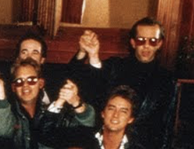 一番、最後の写真に右上に真っ黒い上下の洋服を着てサングラスをした細い男が私ですが、「公式ジャケットの写真」にもなっています。