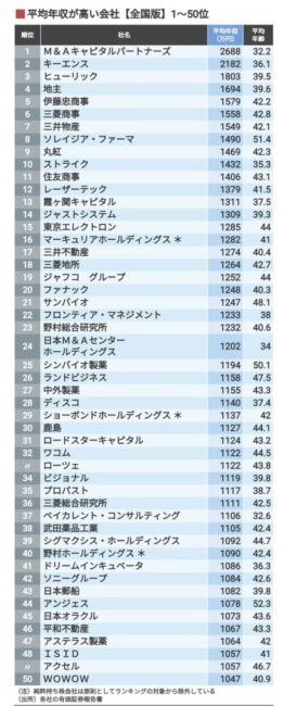 「平均年収が高い会社」ランキング全国トップ500を「東洋経済」で見ると、