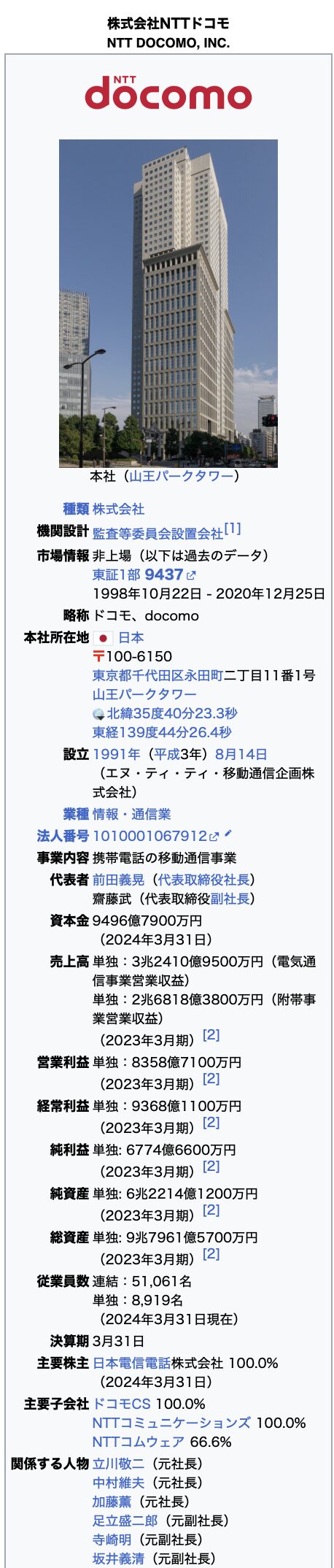 注)私の許可なく勝手にドコモをNTTに吸収したので、このケリは付けます。