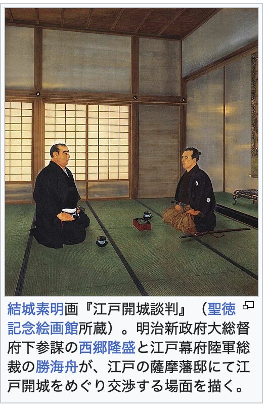 さらに、京都の天皇に金を渡して「討幕の許可証」を書かせ、徳川幕府を制圧する許可証を出させて、慶応4年(1868年)4月11日、「江戸城無血開城」をさせました。