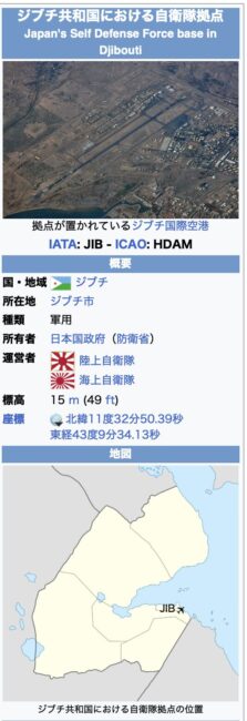 ジブチ共和国に設置された自衛隊の海外における唯一の拠点です。
