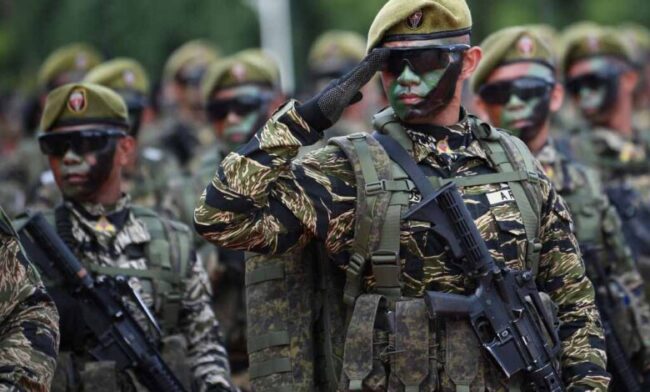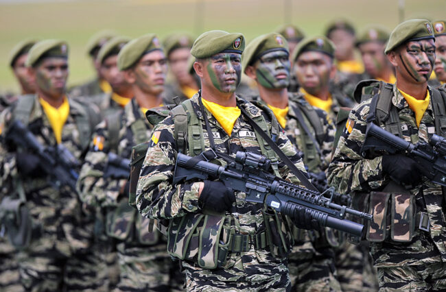 Soldiers parade in Manila to mark the Armed Forces of the Philippines’ 89th founding anniversary in December 2024.