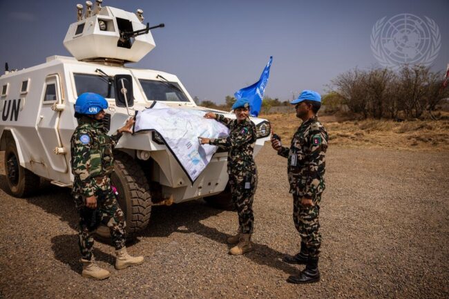 Captain Ritu Pandey, Liaison Officer from Nepal, speaks with colleagues.