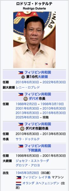 フィリピンの 「ロドリゴ・ドゥテルテ大統領」はお友達で義兄弟です。