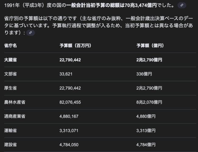 大蔵省の予算を組む方法は、各省庁の賄賂金を乗せた前年度予算を集めて、「外注」で計算させるのが普通なので計算ができないバカばかりで呆れました。