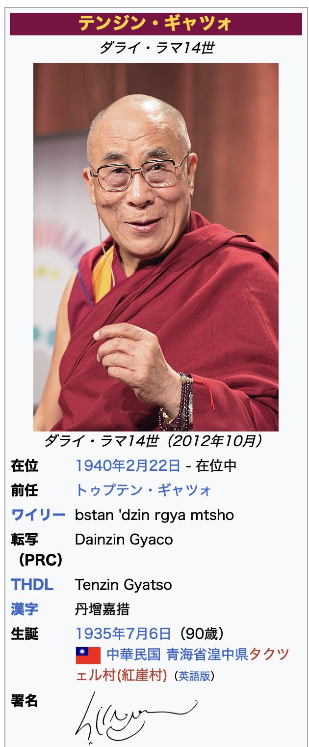 ダライ・ラマ14世は、第14代ダライ・ラマ。法名はテンジン・ギャツォ。