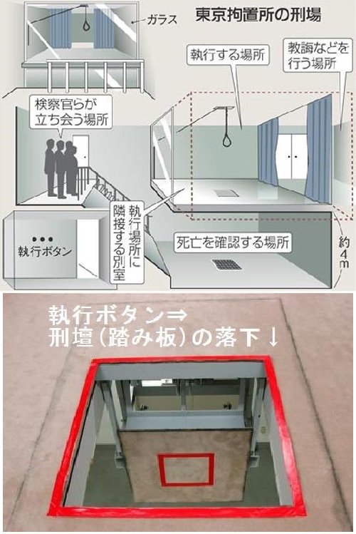 「死の階段13段(十三階段)」とは、戦後の日本で絞首刑の処刑台の階段が13段だったという俗説に由来し、「処刑」「死刑執行」を意味する隠語として使われるようになりましたが、実際には段数は様々で、日本の刑場は水平移動で執行される場合も多いです