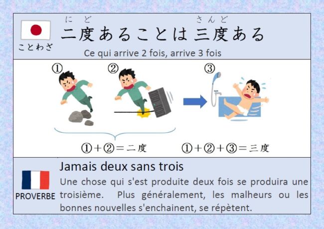 • ポジティブな意味(稀): 良いことが2回続いたとき、「二度あることは三度ある」と、次も良いことが起きる期待を込めて使うこともある。