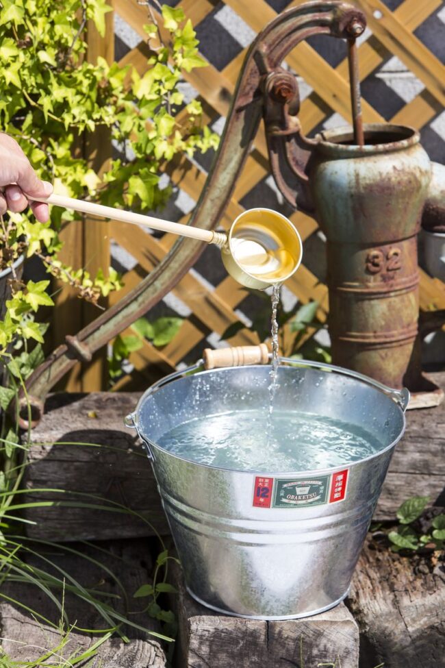 「水道」というお金がかかるものは極力家に持ち込まないほど「貧乏な小作農家」ですが、「地下水だけは豊富な家」なので、家の中にも外にも「手漕ぎポンプ」がありました。