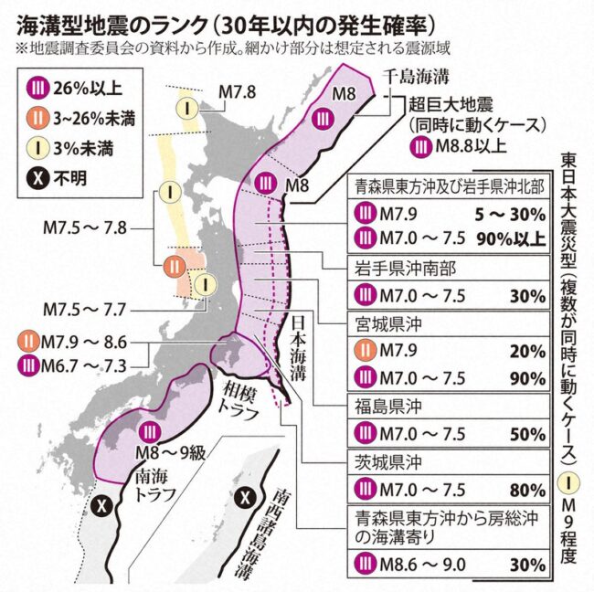 今後30年以内にマグニチュード(M)7級の地震が発生する確率は70%程度とされています。