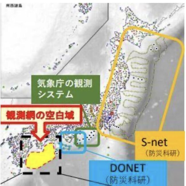 - 特徴: 2024年に完成。この設置により、南海トラフ沿いの観測網がほぼ完成し、最大20秒の緊急地震速報の高速化と、最大20分の津波検知の早期化が期待されている。