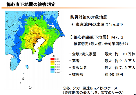 都心南部直下地震(M7.3)を想定した主な被害予測は以下の通りです。