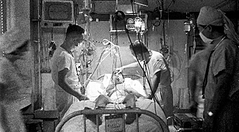 教授から「人工心肺」の研究を命じられて、電機メーカーの技師らの協力を得て、人工心肺の動物実験に成功した。「次は人工心臓だ!」。