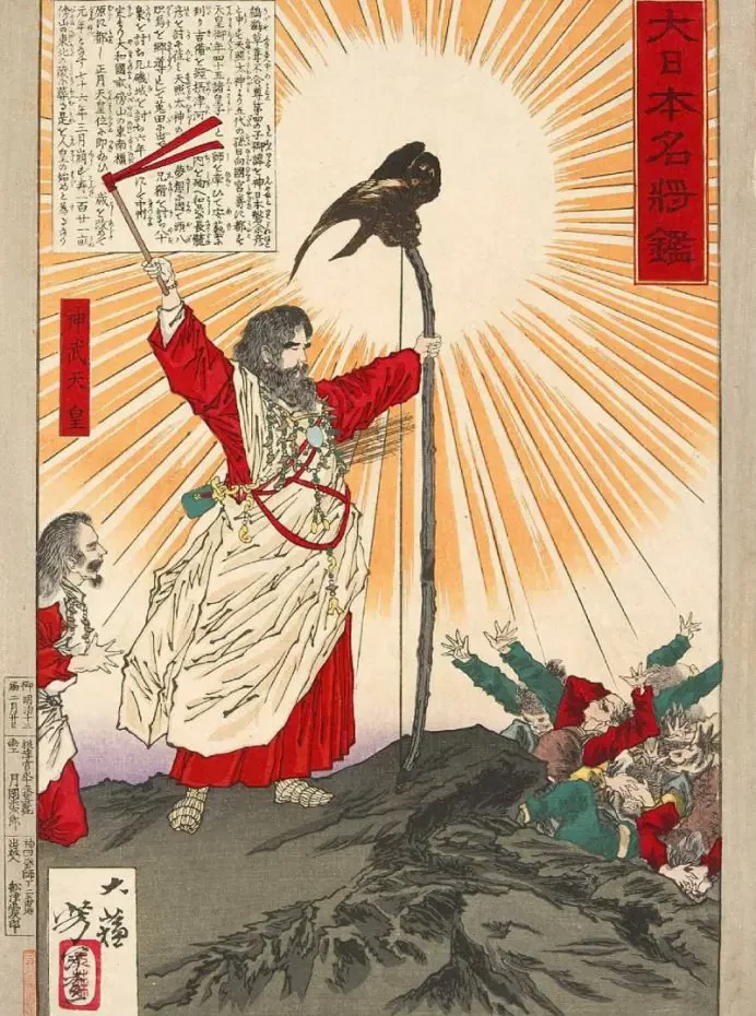 日本の神札が神武天皇(建国神話の主人公)から天照大神(皇祖神・太陽神)へ移行した背景には、明治政府が「万世一系」の天皇主権国家を確立するため、天皇の神格化(現人神)を徹底し、伊勢神宮を全国の信仰の中心へ据える「神国思想」の強化があった。